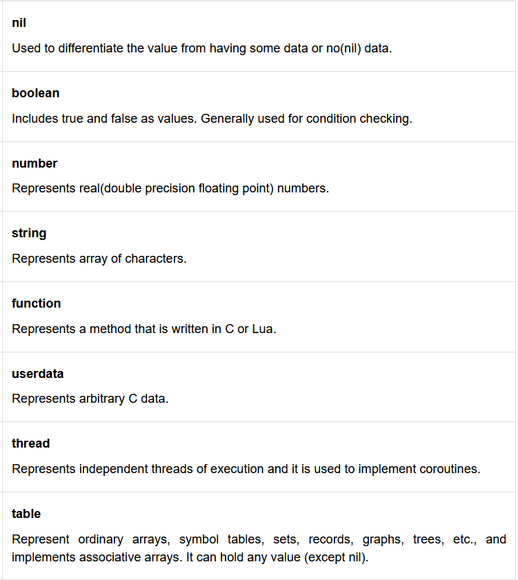 Lua - Data Types - Tutorialspoint