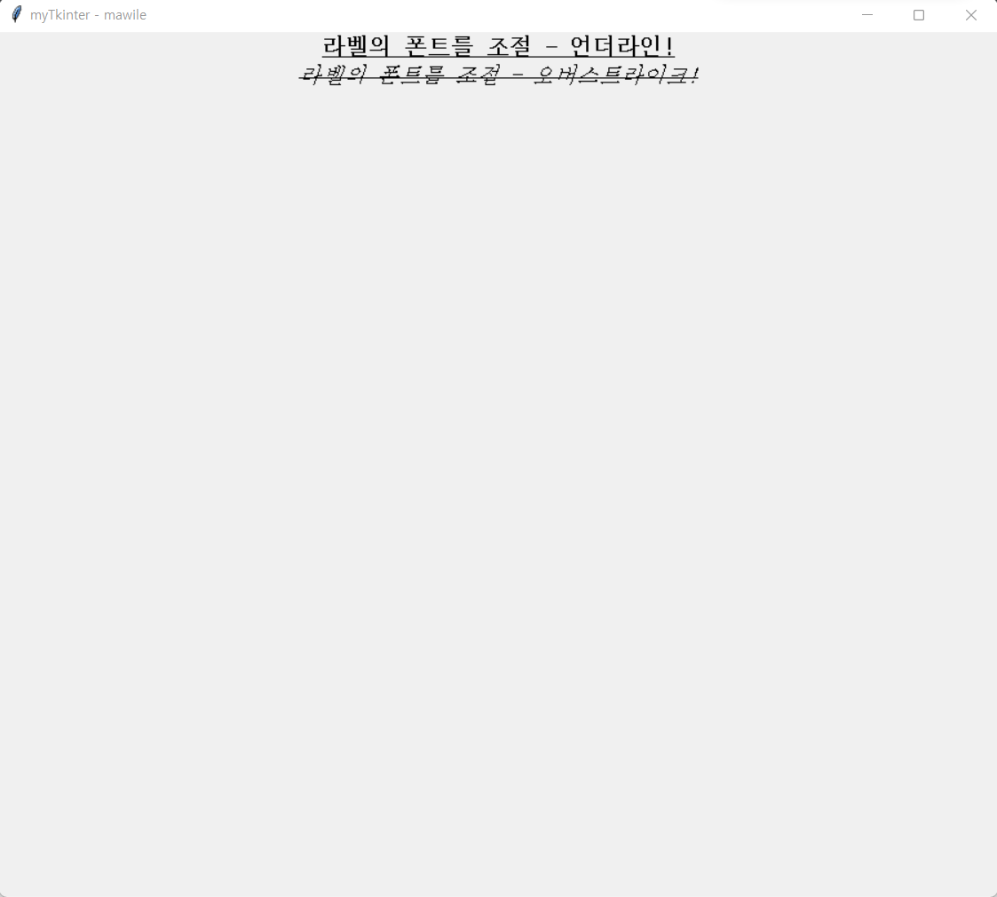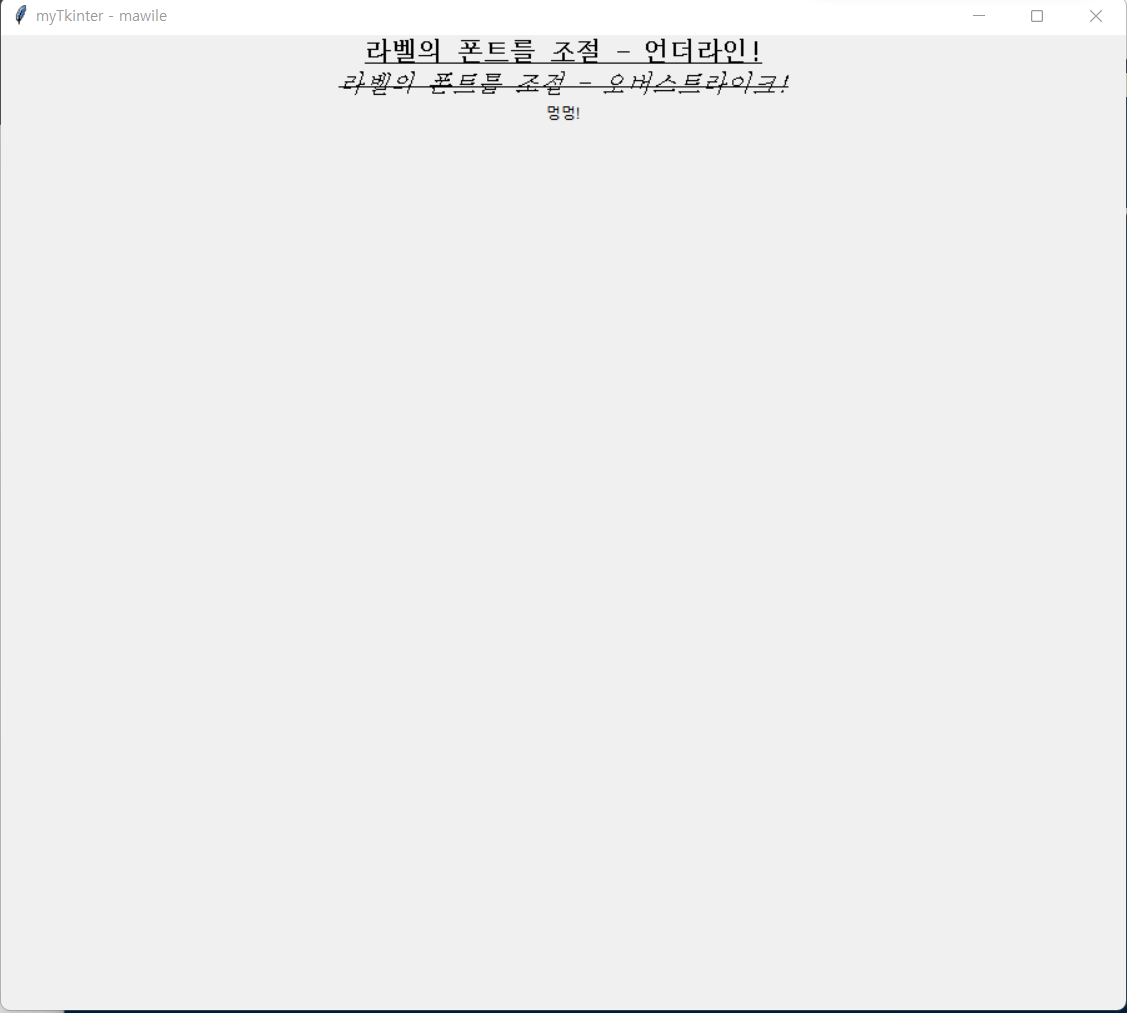 label1 = tkinter.Label(win, text = '라벨의 폰트를 조절 - 언더라인!', font = myFont_underlineBold)