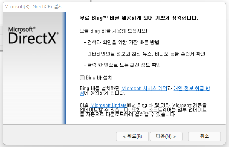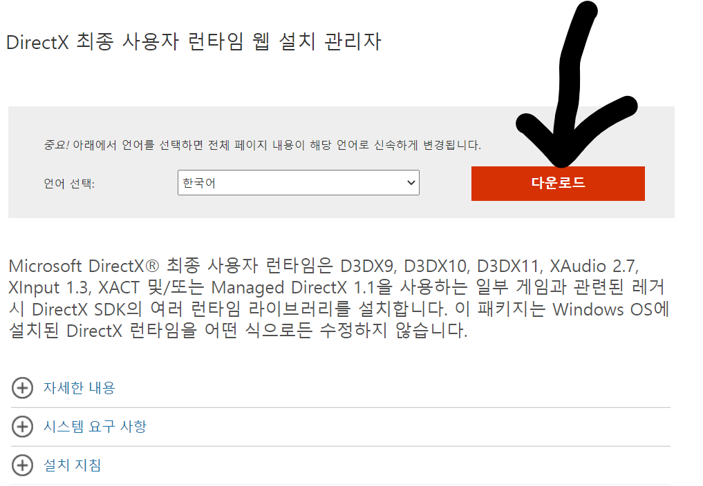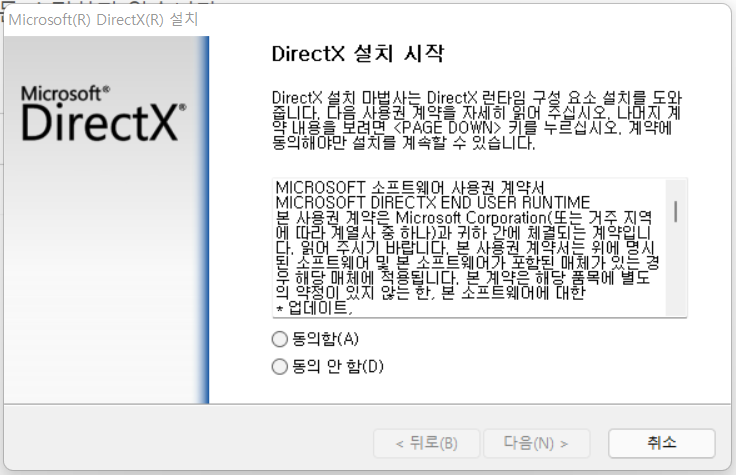 우선 DirectX를 설치하기 위해서 다음과 같은 가이드라인에 따라 따라해주시기바랍니다.