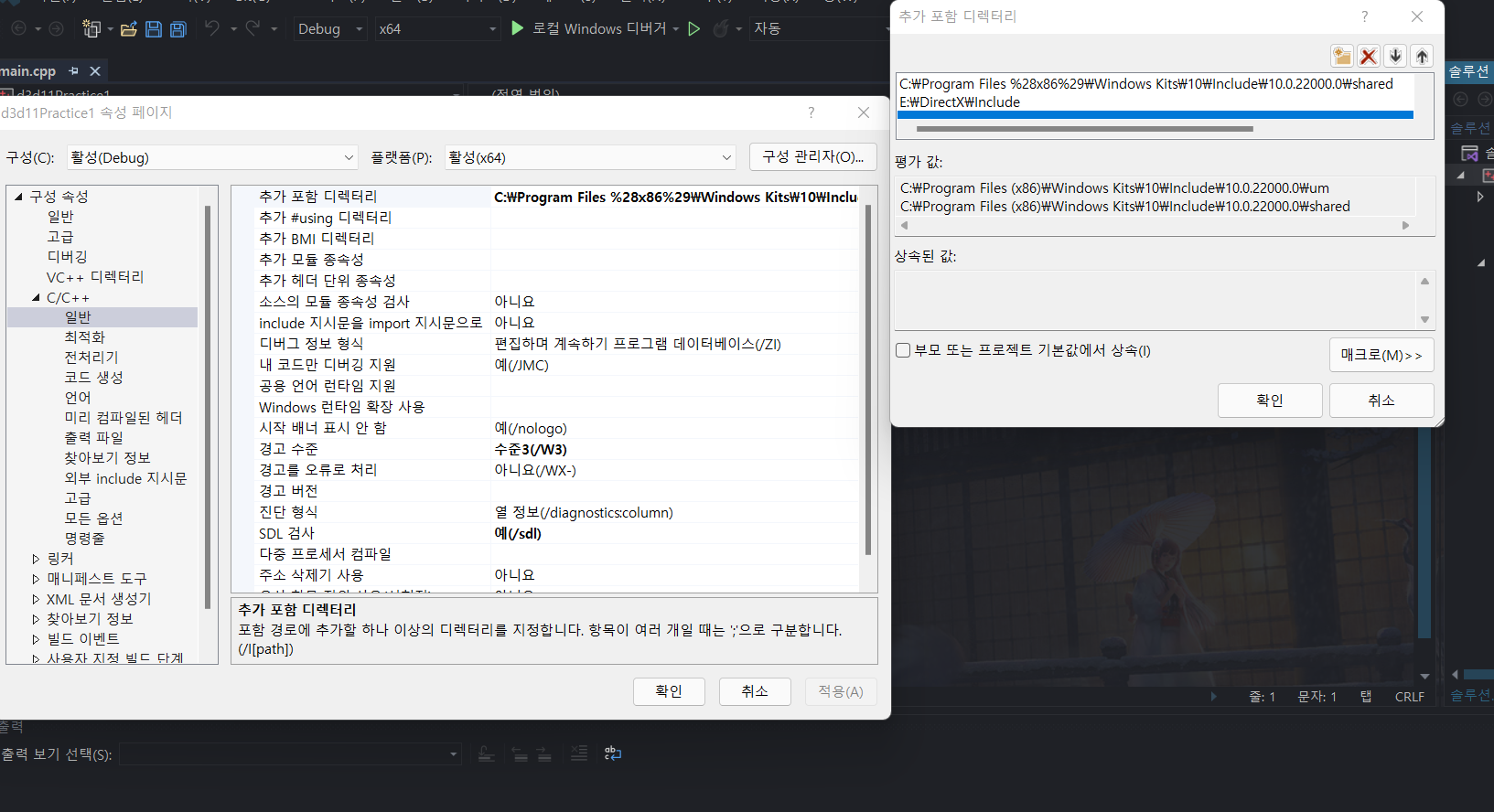 (반드시 DirectX의 Include폴더를 가장 밑(가장 처음)에 참조해주세요!)