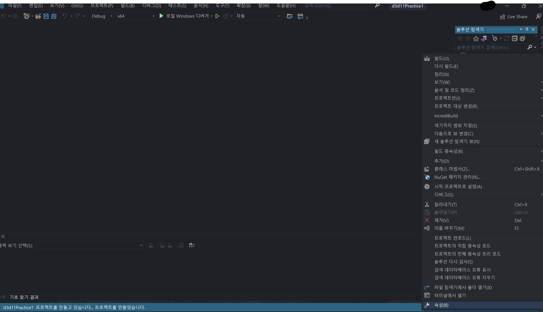 그러면은 솔루션이랑 프로젝트가 열립니다.