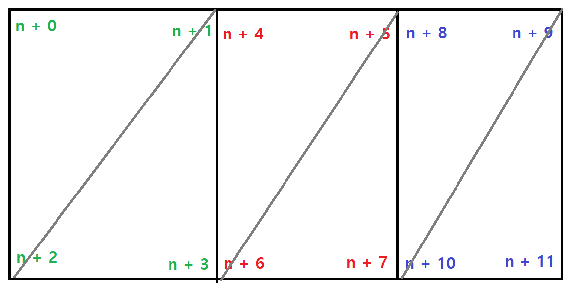 for (size_t i = 0, k = 0; i < indices.size(); i += 6, k += 4)
