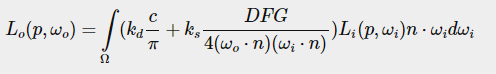 쿡-토랜스 BRDF의 모든 구성 요소를 설명하면, 우리는 물리적으로 기반을 둔 BRDF를 현재 최종 반사 방정식에 포함할 수 있다.
