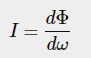여기서 I는 실각 ω에 대한 복사유량 Φ이다.