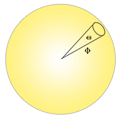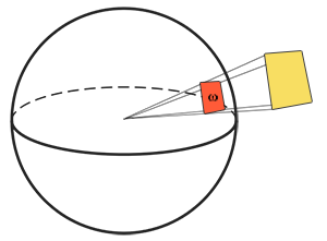 이 단위 구의 중심에 있는 관찰자가 되어 모양 방향을 바라본다고 생각해보세요; 여러분이 그 안에서 만드는 실루엣의 크기는 입체각입니다.