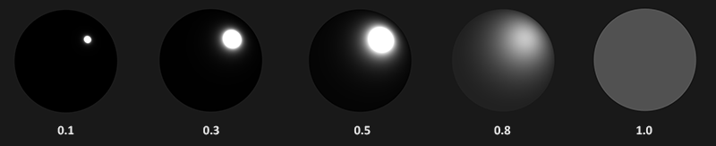 우리는 더 높은 거칠기 값이 부드러운 표면의 더 작고 날카로운 반사 형태와 대조적으로 훨씬 더 큰 반사 형태를 나타낸다는 것을 알 수 있다.