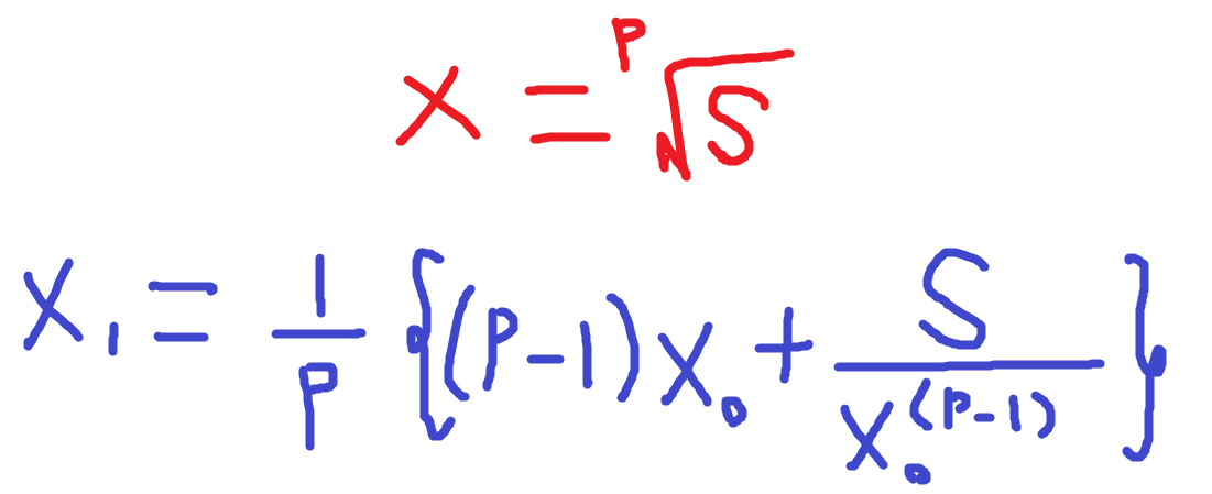 x = (1 / p) * (p_1 * x + (S / mypow(x, p_1)));